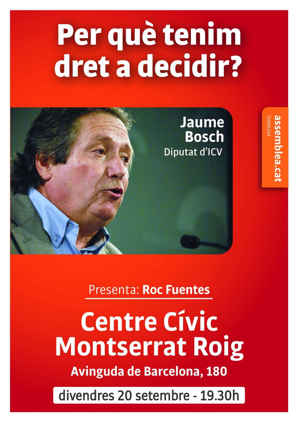 20 de setembre Jaume Bosch a Terrassa “Per què tenim dret a decidir?”